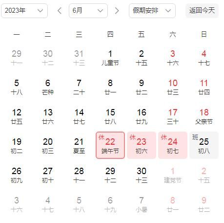 值得關(guān)注的是,五一之后下一個(gè)節(jié)假日就是端午節(jié),網(wǎng)友發(fā)現(xiàn),端午節(jié)和五一同樣需要調(diào)休:今年端午節(jié)是6月22日,22日-24日放假,25日(周日)上班。也就是說(shuō),法定放假一天,但打亂了正常雙休,25日(周日)調(diào)休一天,假期后再連續(xù)上班6天。